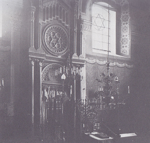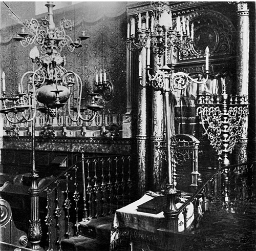Źródło:Bartosz A.:Tarnowskie Judaica. Wnętrze Synagogi Starej w Tarnowie z około 1870 roku